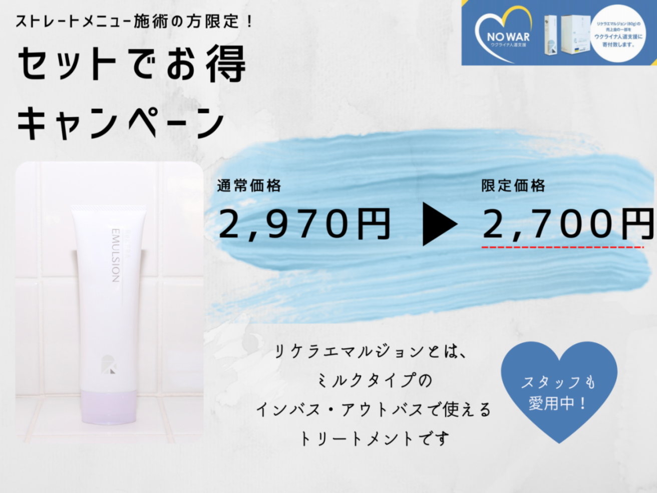 リケラエマルジョン 80gの利益の全てをウクライナの人道支援に寄付されるそうです。
