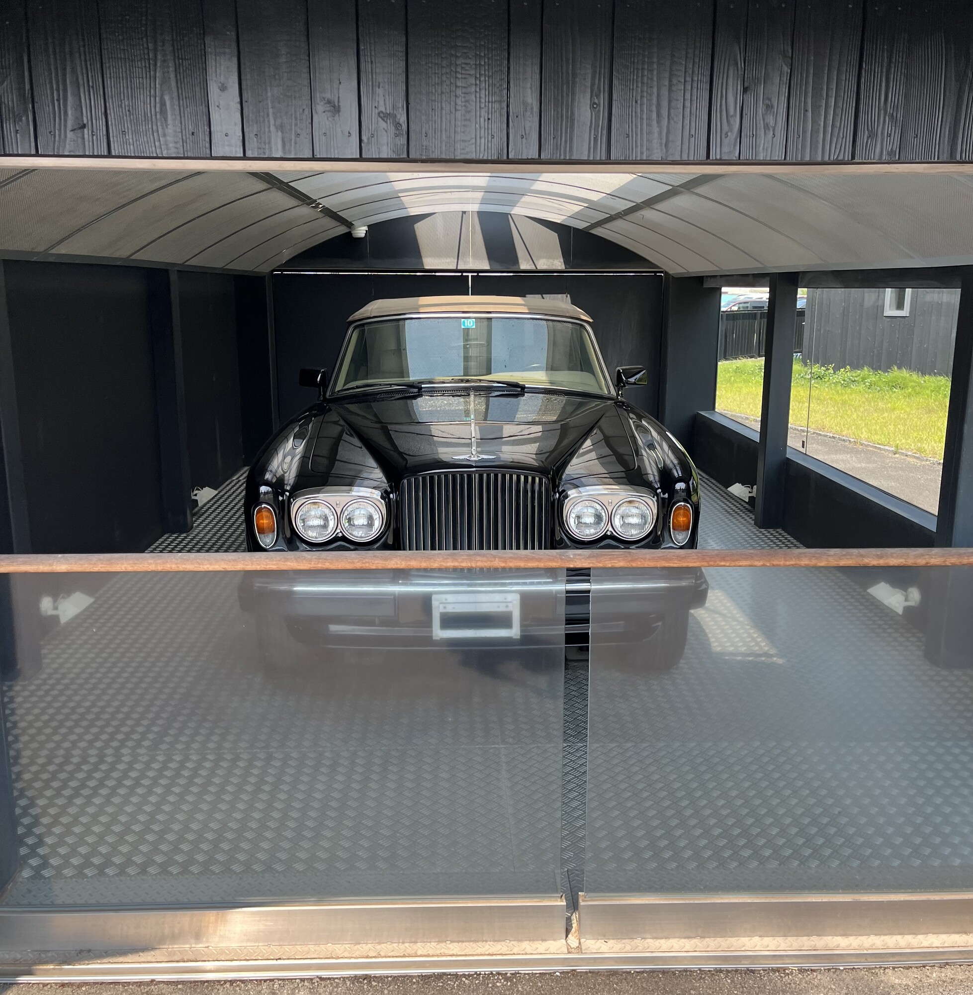玄関先に飾られていたベントレー。乗り物マニアの一片なのでしょう。