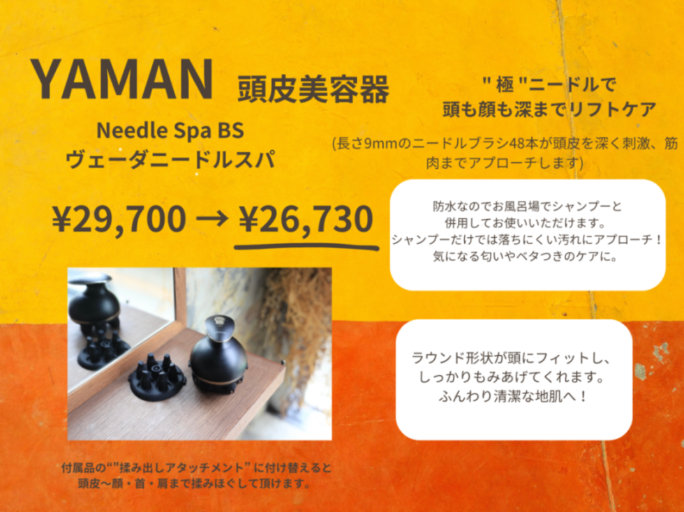 また今年はお歳暮セットや、去年に引き続き人気のあったYAMAN頭皮美顔器もご用意しております。